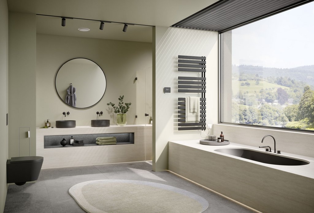 Farbenfrohe Produkte, ergonomische Höhen am Waschplatz für jedes Alter,