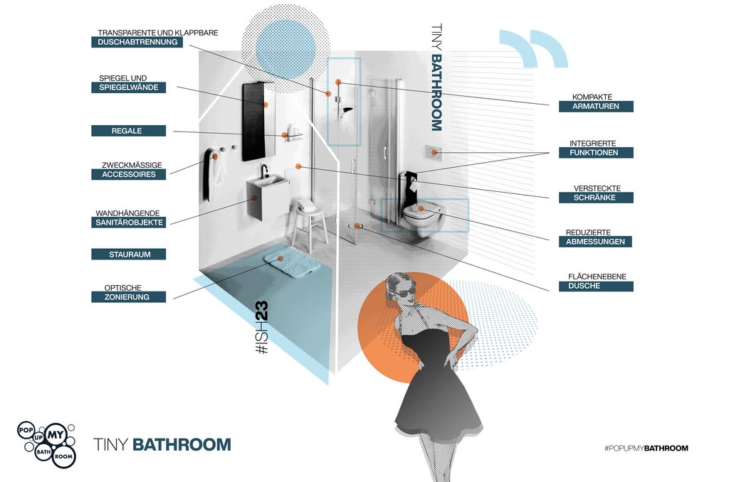 Bei Pop up my Bathroom wird während der ISH 2023 Nachhaltigkeit im Badezimmer als Zukunftskonzept vorgestellt, das Wasser und Energie sparende Produkte, umweltschonende Industrieproduktion und nachhaltige Materialien kombiniert.
