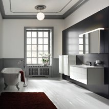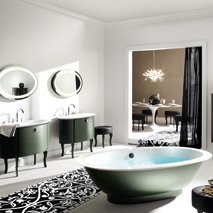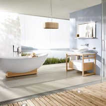 Wie hat ein Bad auszusehen? Hier das Standardprogramm von Dusche oder Wanne, WC und Waschtisch, darüber der Spiegel, dort vielleicht noch ein Schränkchen… und alles streng an der Wand lang. Das war einmal. Doch die Formen für den Bedeutungswandel weg von reiner Zweckmäßigkeit hin zu mehr Ambiente und Wohnlichkeit müssen erst noch gefunden werden. Wer heute das Badezimmer noch als reinen Nutzraum betrachtet, der lediglich der Hygiene und der Körperpflege dient, outet sich als von gestern. Denn wer sich heute im Bad aufhält, der will sich hier wohlfühlen, fallen lassen, vom Stress des Alltags befreien. Und so wird das Bad immer wohnlicher eingerichtet, als Oase der Entspannung. Das Design wird durchgängiger und steht im Dialog mit den umliegenden Wohnbereichen. Durchgänge zu einem angrenzenden Schlaf-, Fitness- oder Ankleidezimmer werden geöffnet und lassen sich bei Bedarf durch Schiebetüren oder Ähnliches wieder beliebig transparent schließen. Entspannungsmöbel wie Liegen und Sessel halten Einzug und bilden zusammen mit Wanne oder Sauna eine Ruhezone. Wände werden gefliest, verputzt oder gar tapeziert, und beim Boden darf es ruhig auch mal Holz oder Teppich sein. Und die Möblierung bietet im Bad zwischen strenger und beschwingter Linienführung genauso viel Variantenreichtum wie in den übrigen Einrichtungssegmenten.