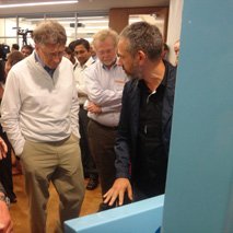 Bill Gates mit Harald Gründl, Designer von EOOS und Wissenschaftler von Eawag bei der Präsentation am 14. August 2012. Foto: EOOS