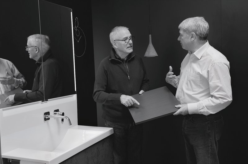 Letztlich geht es doch um die Bedürfnisse der Menschen, die ein Bad nutzen. Natürlich bringe ich als Designer Vorstellungen dazu mit, aber ich musste hier auch auf das Wissen des Unternehmens zurückgreifen. Burgbad hat mich also zu einer ganzen Reihe seiner Partner mitgenommen, die untereinander zwar im Wettbewerb stehen, die mir aber allesamt das Gleiche sagten: „Wir wollen mit euch und für euch erfolgreich sein, aber dazu brauchen wir Antworten und Lösungen für konkrete Probleme. Aber die kriegen wir nicht, wenn ihr euch mit so einer kleinen Box, genannt Möbel, zu enge Grenzen setzt.“ Wir sind sehr viel Enthusiasmus begegnet und wurden mit klaren Problemanalysen konfrontiert, auf die wir nun eine mögliche Antwort gefunden haben, hoffe ich.
