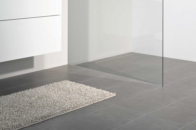 Bei Einsatz eines Linienablaufs quer zur freistehenden, 200 cm hohen Duschwand wird diese mit einer neuartigen Keilschiene im Boden und einem Keilprofil in der Wand fixiert. Für einen Ablauf parallel zur Glasfläche oder eine Punktentwässerung kommt eine Parallelschiene im Boden zur Anwendung.