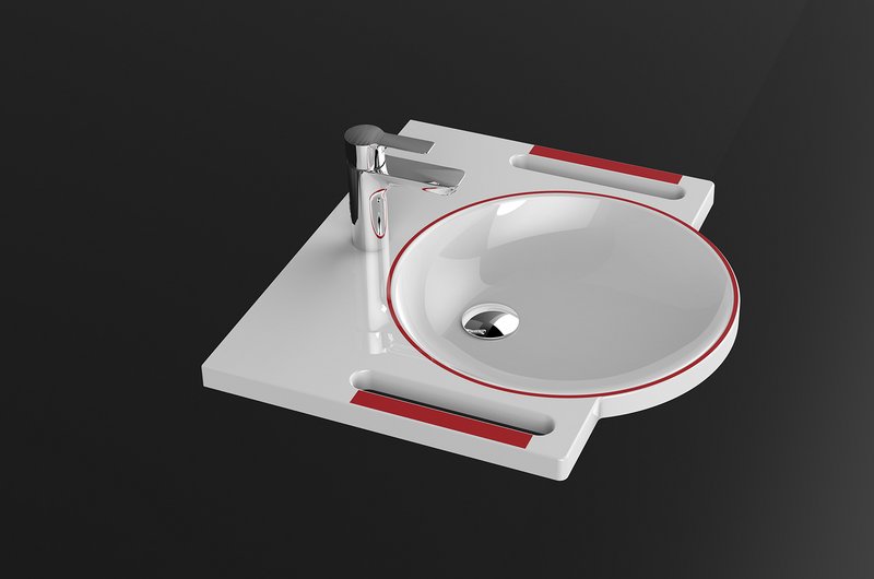 Hewi bietet einen barrierefreien Waschtisch, der über farbige Markierungen verfügt. Welche Funktion hat die farbige Gestaltung?