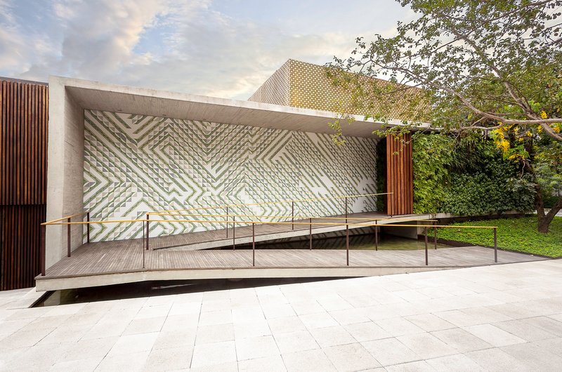 Das Aigai Spa in São Paulo ist eine Oase der Ruhe inmitten der brasilianischen Metropole. Die zweistöckige Architektur des Spas öffnet sich zwar zum Himmel, schirmt aber dennoch die laute und unruhige Welt der Großstadt ab. Zentrales Element des Bauwerks sind die zwölf individuell gestalteten Patios. Mit üppig bepflanzten Gärten, komfortablen Ruhezonen und schillernden Pools wollen die behaglichen Innenhöfe für pure Erholung sorgen. Schatten spenden dort Maschrabiyya-Gitter, die an den Fassaden sowie als Schiebedächer zum Einsatz kommen und ein atmosphärisches Spiel aus Licht und Schatten kreieren. Als Hommage an die traditionelle arabische Architektur stehen sie im Kontrast zu dem rohen Sichtbeton, den Architekt Mario Figueroa überwiegend für den Bau eingesetzt hat.
