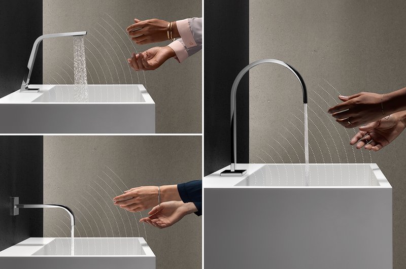 Touchfree-Anwendungen werden an Orten mit hohem Besucheraufkommen immer beliebter – dazu zählen unter anderem halböffentliche Sanitärräume in Hotels, Büros, Restaurants oder auch an Flughäfen. Während dort für Waschtischarmaturen bislang vor allem Infrarotsensoren zum Einsatz kamen, bringt Dornbracht mit Touchfree erstmals die Vorteile der Hochfrequenztechnologie in diese Bereiche. Dadurch kommt Touchfree ohne sichtbaren Sensor an der Armatur aus und kann – ähnlich einem Bewegungsmelder – auf unterschiedliche Reichweiten eingestellt werden. So schaltet der Touchfree-Sensor das Wasser automatisch ein und auch wieder aus, sobald die Person den Waschplatz verlässt.