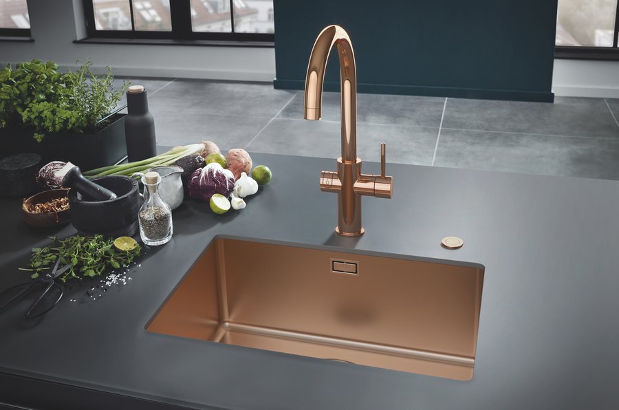 Keramik-, Granit-, Edelstahl- oder kupferfarbige Spüle eingebettet werden sollen.