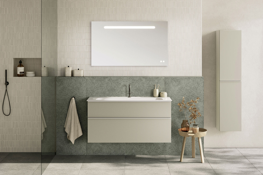 2.0 von Burgbad adaptiert den Trend zu vertikal profilierten Möbeln mit