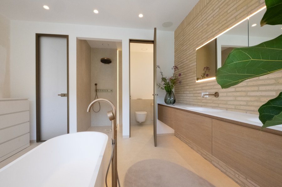 Auch im privaten Badezimmer der Innenarchitektin Franziska Kanani wurde auf jedes Detail geachtet. So wurden etwa die Fassadenklinker auch im Bad eingesetzt.