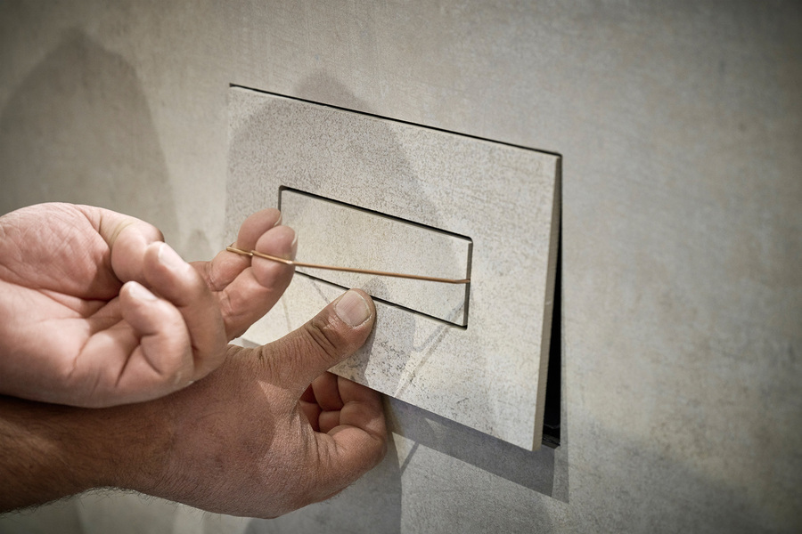 WC-Betätigungsplatte von Viega flexibel auf Armaturen, Badmöbel oder Fliesen