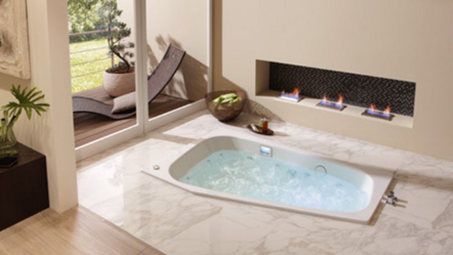 To enhance the relaxing and enjoyable experience even more, the whirlpool tubs can be equipped with optional underwater spotlights or spectral lights. And there are even illuminated nozzles for the Vivo Turbo and Vivo Turbo Plus systems, which immerse both the water in the tub and the surrounding space in an atmospheric light –ideal, particularly on gloomy winter days.