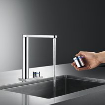 Electronic fittings are fun to handle – and far more than just a gimmick for technophiles. In fact, thanks to their innovative technologies, e-fittings like those from KWC are prime examples of ecological awareness because they help promote an economical approach to water and energy: water only comes out of the tap when the user actually makes contact with the tactile sensor. Touch-free fittings also provide benefits – especially in the kitchen, where hygiene plays a crucial role. After kneading dough or handling raw meat, for instance, the cook can wash his or her hands without making the tap lever dirty. And then there's the convenience aspect: what youngsters perceive as a luxury becomes a useful barrier-free solution later on in life, when users may suffer from impaired mobility.