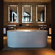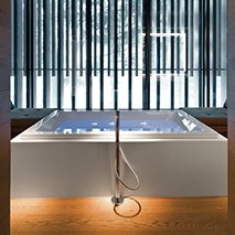 A bathtub with many functions: with infrared heat, light, music and a special control panel, bathing should be an absolute experience.