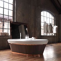 The new Vitrium bath programme fits seamlessly into the overall idea of the Duravit bathroom series. Various bath utensils are quickly to hand on the bath tub edge.