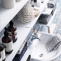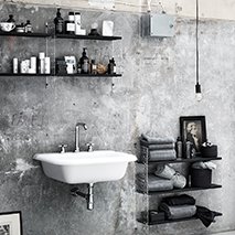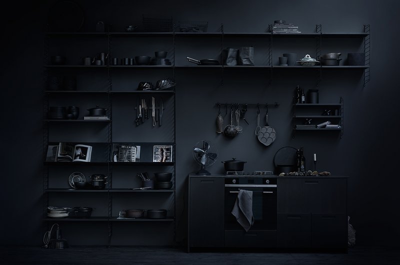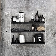 String System is a complex shelving solution offering an almost infinite variety of combinations to meet individual needs. In addition to side panels and shelves available in different measurements, String System offers drawer units, sliding doors, glass cabinets, worktops and magazine trays that can be integrated into the system. The String System, which can always be rebuilt, reinvented and transformed, is not only suited for the working place or the living room, but also for the bathroom.