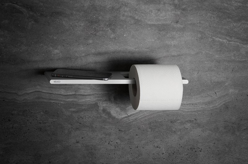 Even today, the nonslip and scratch-resistant surface of the Edition 400 toilet roll holder from Keuco provides a handy place to put your precious smartphone. And perhaps the bathroom fittings and accessories specialist from Hemer in North Rhine-Westphalia will go one step further. After all, people spend an average of 40 minutes a day in the bathroom; women take a little more time (47 minutes), men slightly less (35 minutes).