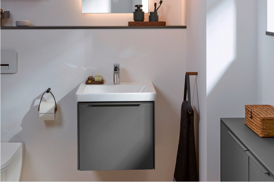 Whenever a new bathroom is created in an existing building – regardless of whether it’s under the roof, in the basement or in a former bedroom – laying the water and wastewater pipes isn’t the only aspect that needs careful consideration; good ventilation is crucial too. If there’s no window, an efficient ventilation system needs to be installed. However, when it comes to light, the absence of a window isn’t a major disadvantage thanks to the many attractive options made possible by LED technology. And the high-tech solutions for illuminating showers, bathtubs and furniture available from the bathroom industry itself will turn any basement bathroom into a feel-good space. In some cases, brand-name suppliers even offer sophisticated mirrors and mirror cabinets equipped with LED lighting systems that are designed to illuminate entire rooms, making more complicated lighting installations superfluous. And many collections from sanitaryware and bathroom furniture manufacturers include standard options for small or guest bathrooms, such as models in reduced sizes or lines with a compact design.